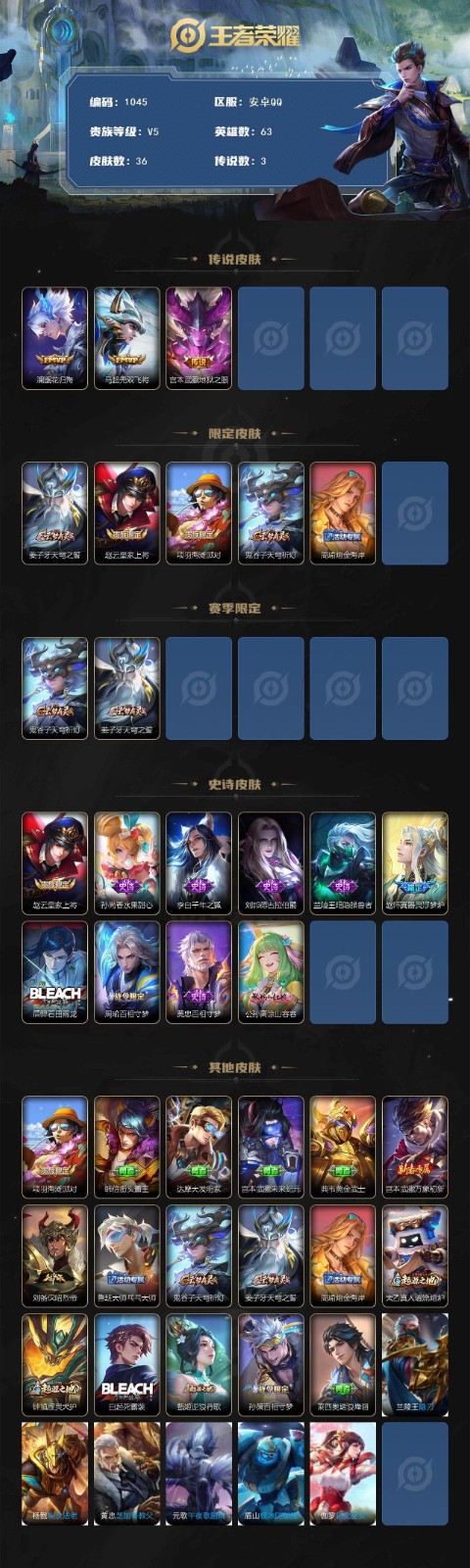 V6 5典藏 19传说 86史诗 317皮肤 永恒钻石II...¥200.00