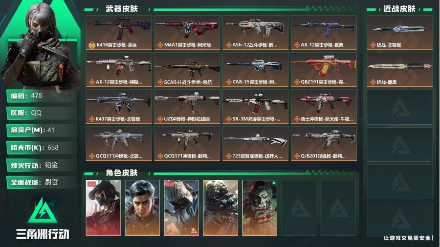 总资产34.4M 2干员外观 1近战 19传说枪械 烽火:黑鹰 战场:...¥1000.00